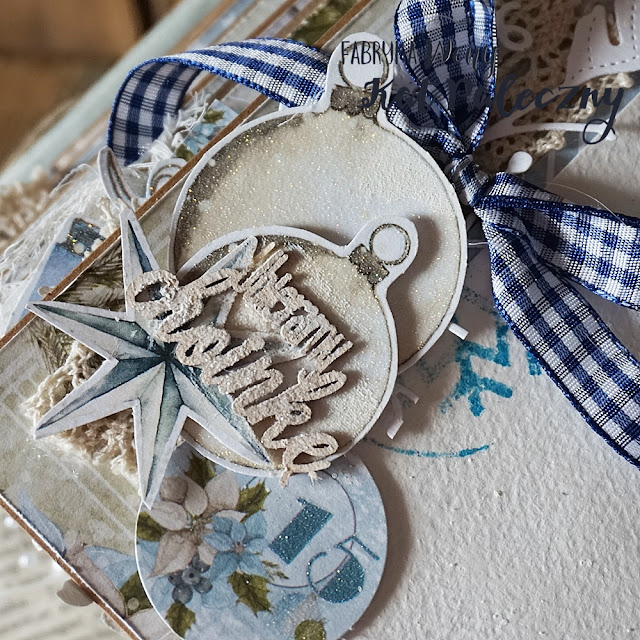 Przygotowałam dziś dla Was kartkę świąteczną. W kartce wykorzystałam bazę od Rzeczy z papieru, papier AB Studio, ale głównym elementem kartki są tekturki Fabryki Weny. Mam nadzieję, że zdołałam uchwycić na zdjęciach przepięknie mieniący się brokatu, którym oprószyłam jeszcze wilgotną masę kryształową.